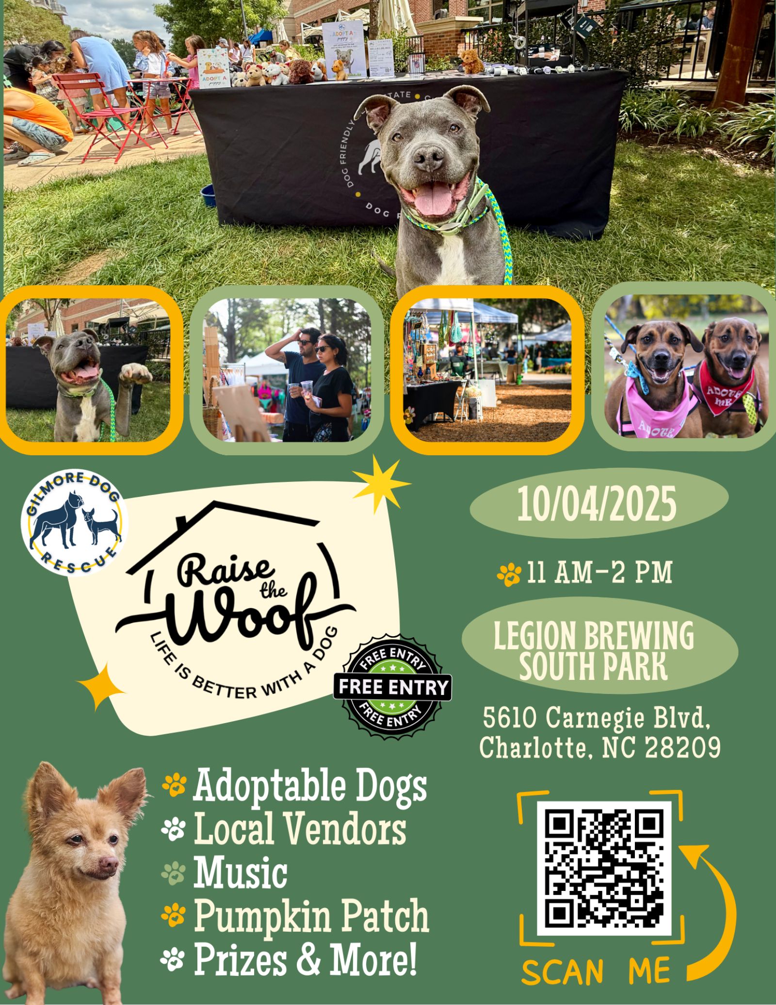 Gilmore Dog Rescue invites you to Raise the Woof, an exciting community event celebrating our furry friends! Experience a day full of fun, music, and adorable adoptable dogs.
